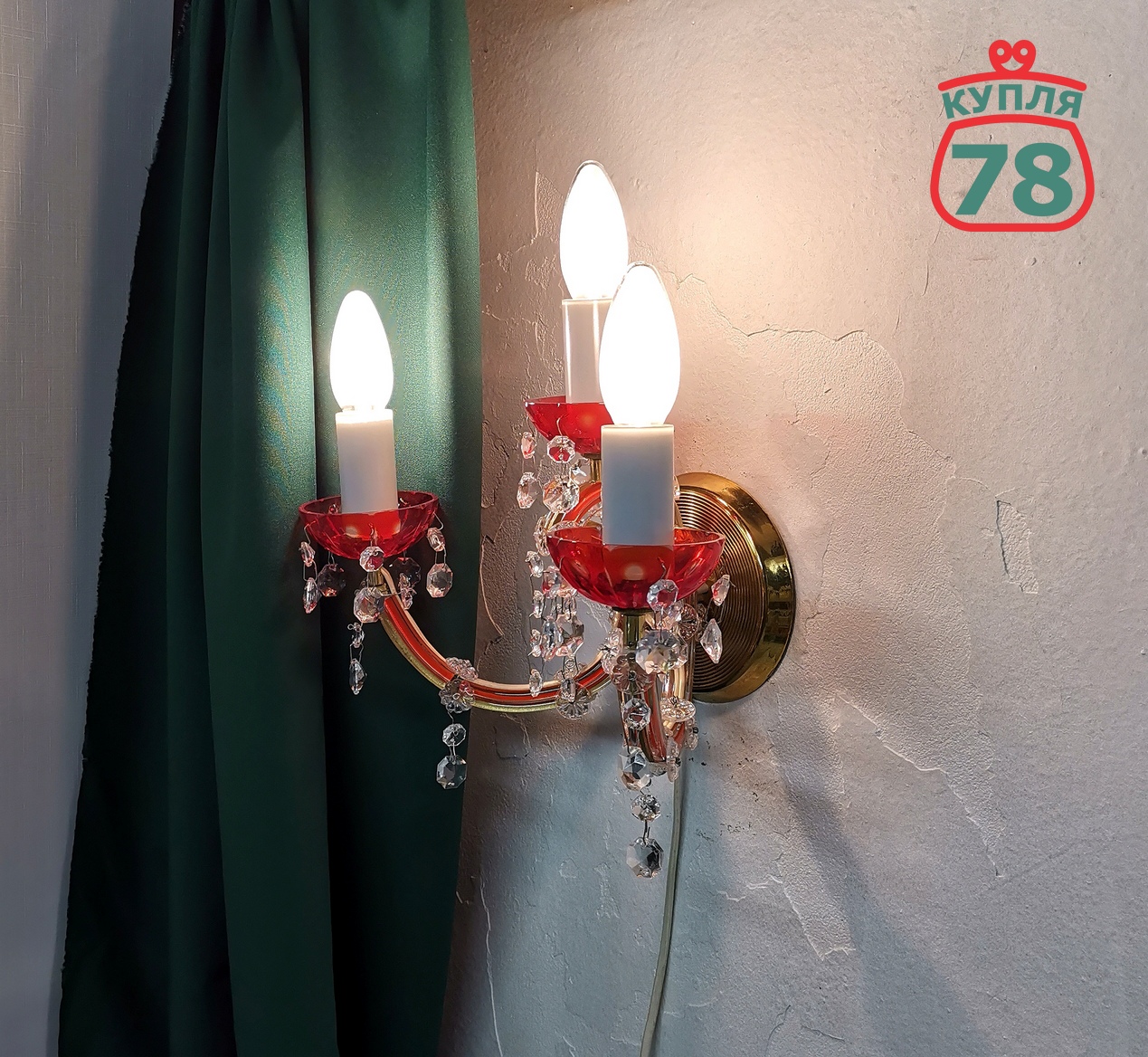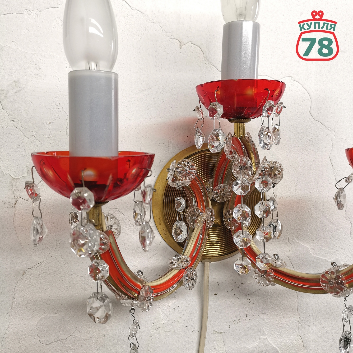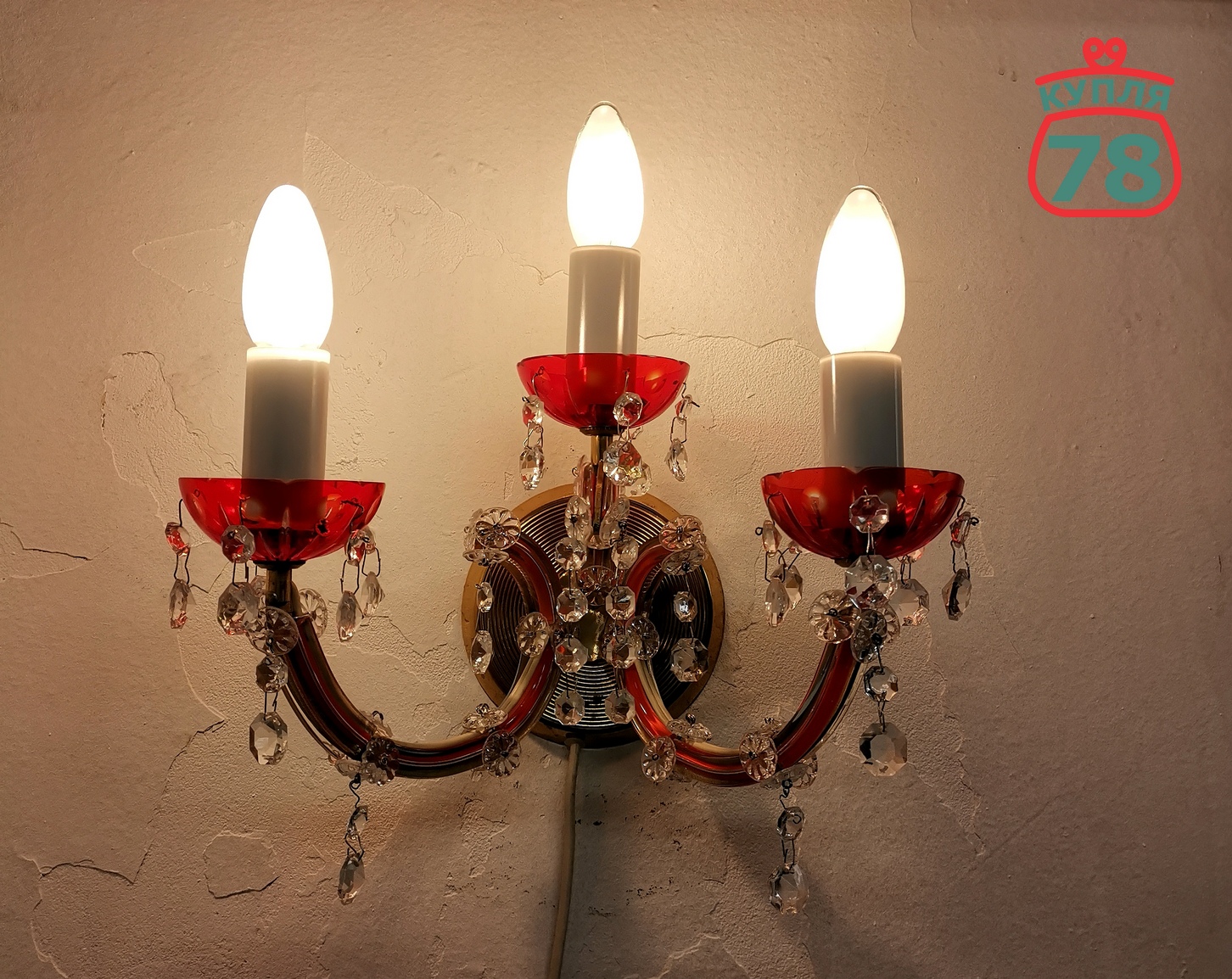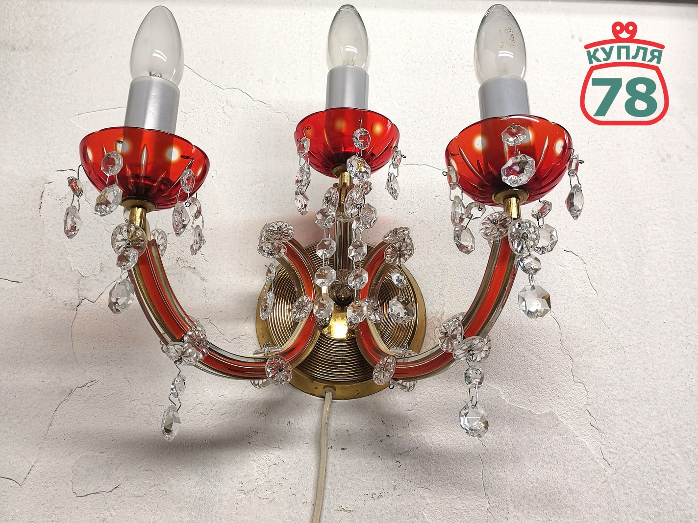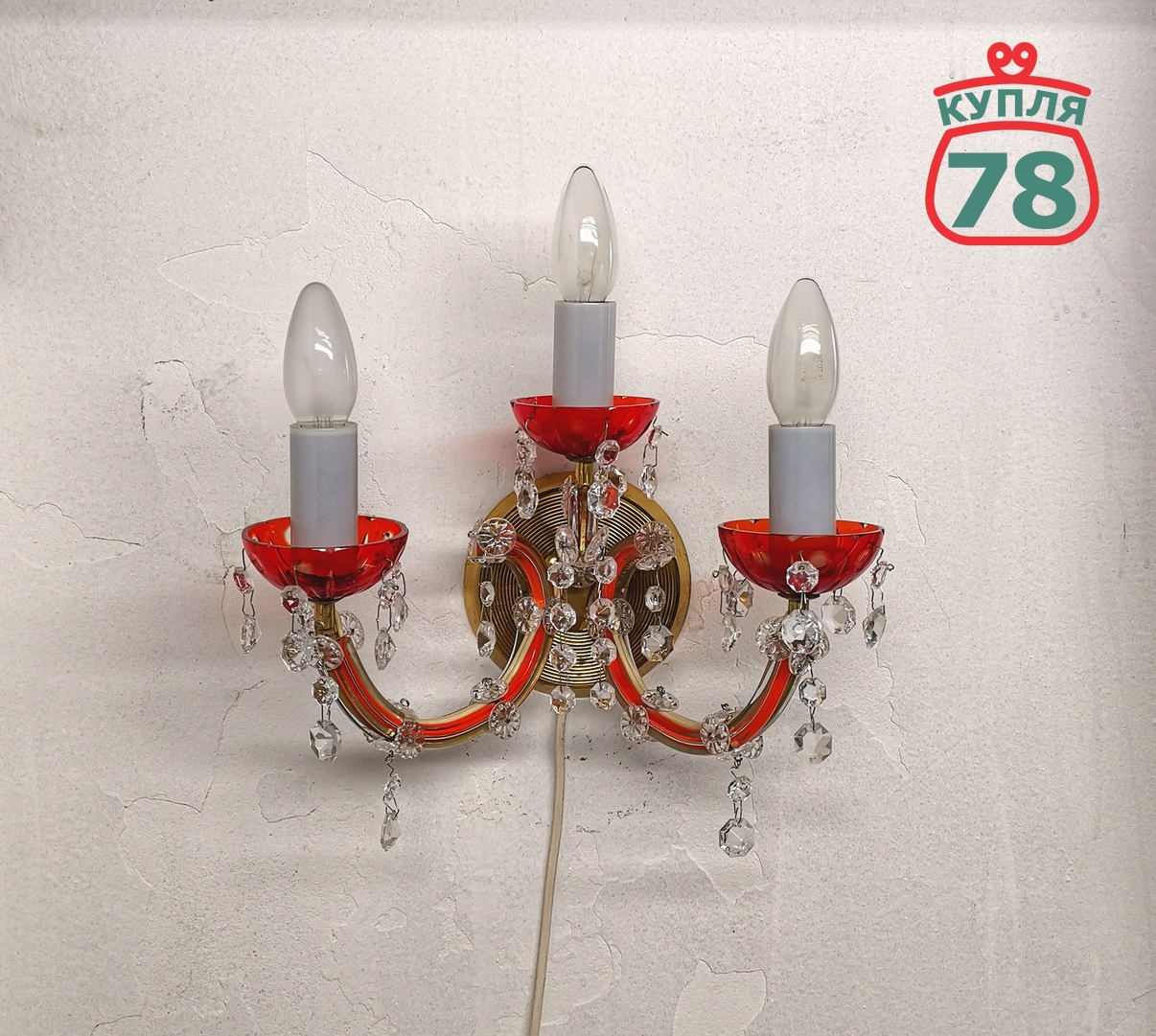 Габариты "Бра Чехия красный хрусталь винтаж / 2954": 33 см Х 22 см Х 30 см