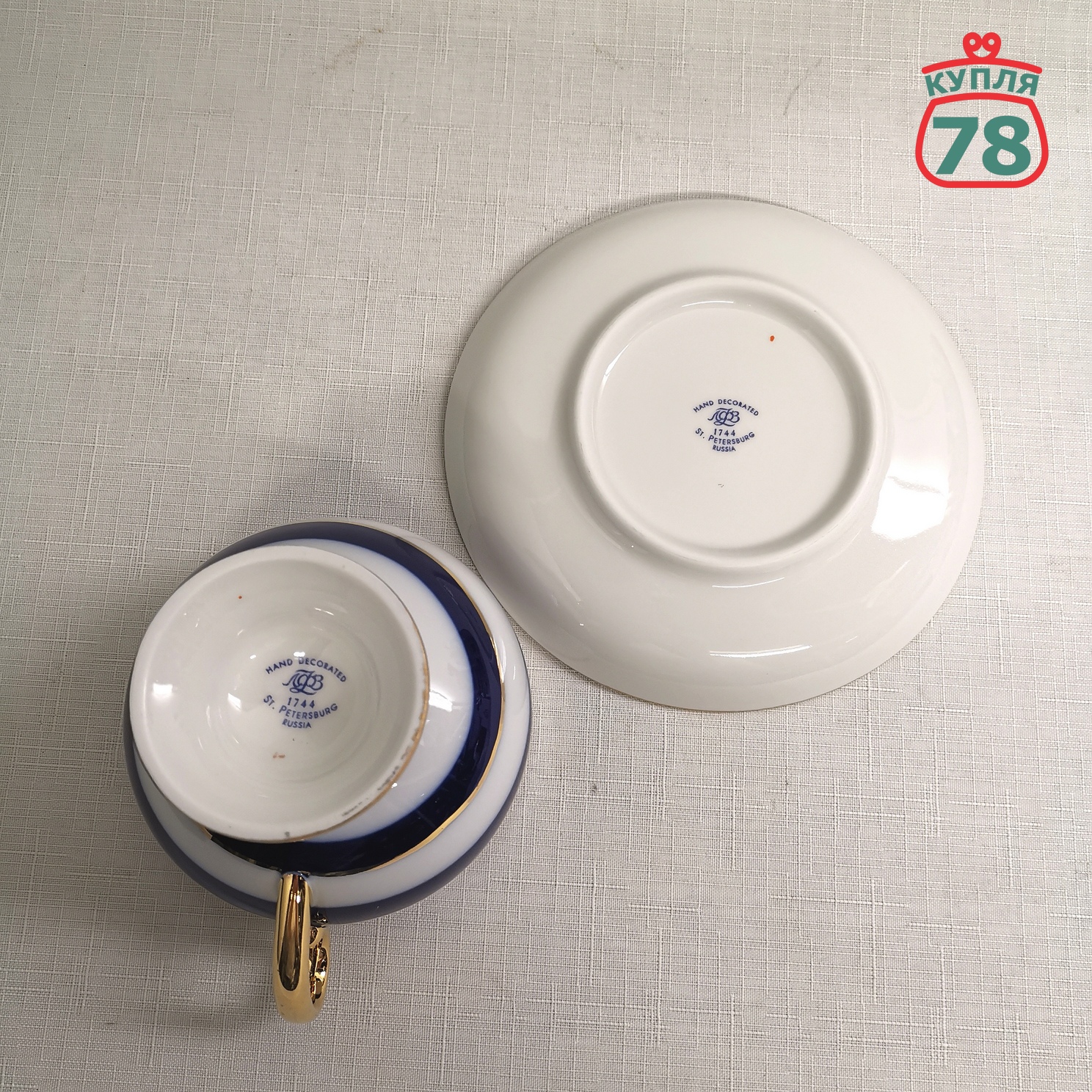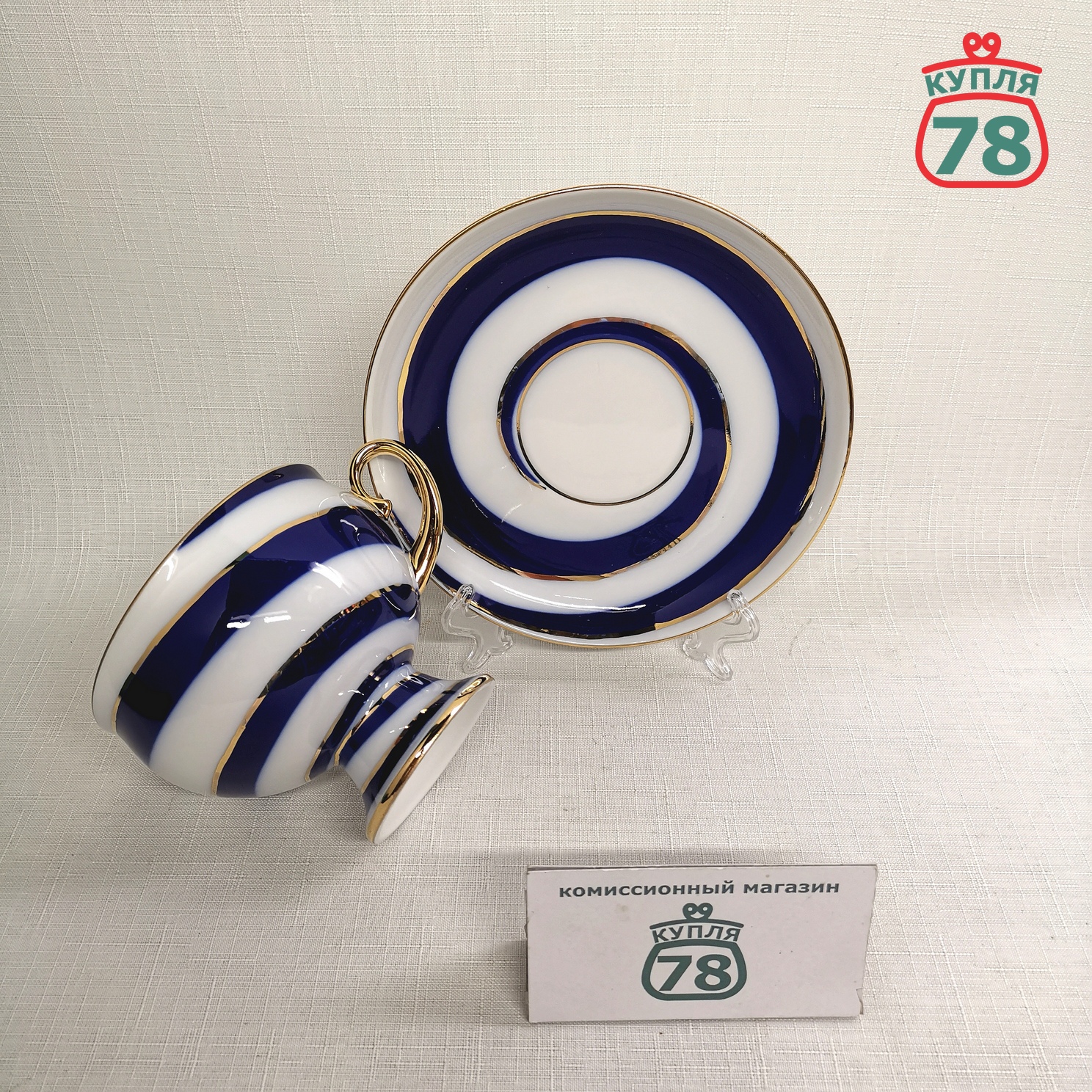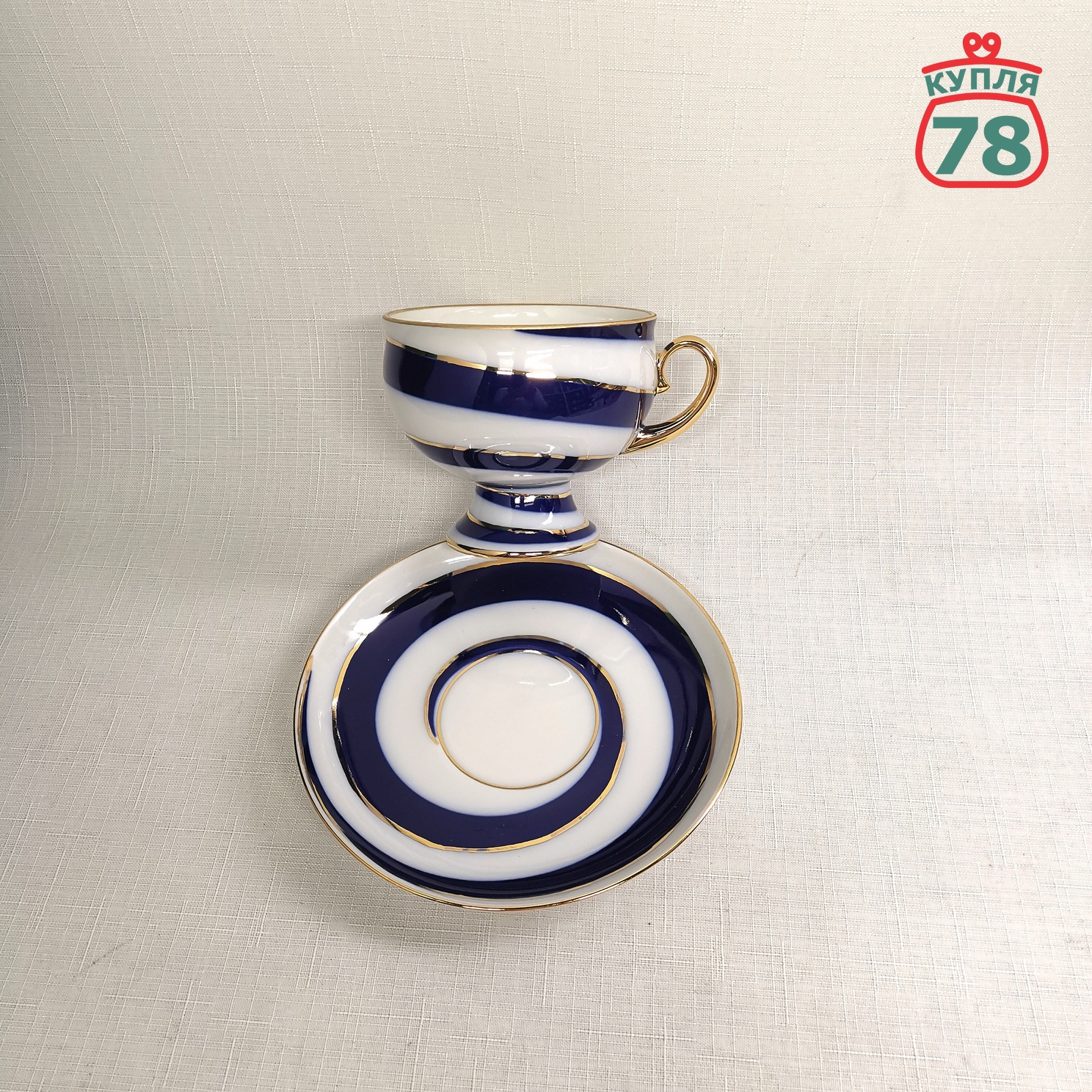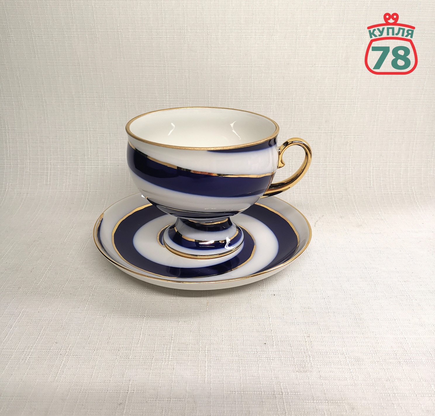 Описание товара: Чайная пара «Серпантин» ИФЗ. Объём чашки 360 мл. Дефектов, сколов и трещин не обнаружено. Незначительные штрихи на позолоте на блюдце.