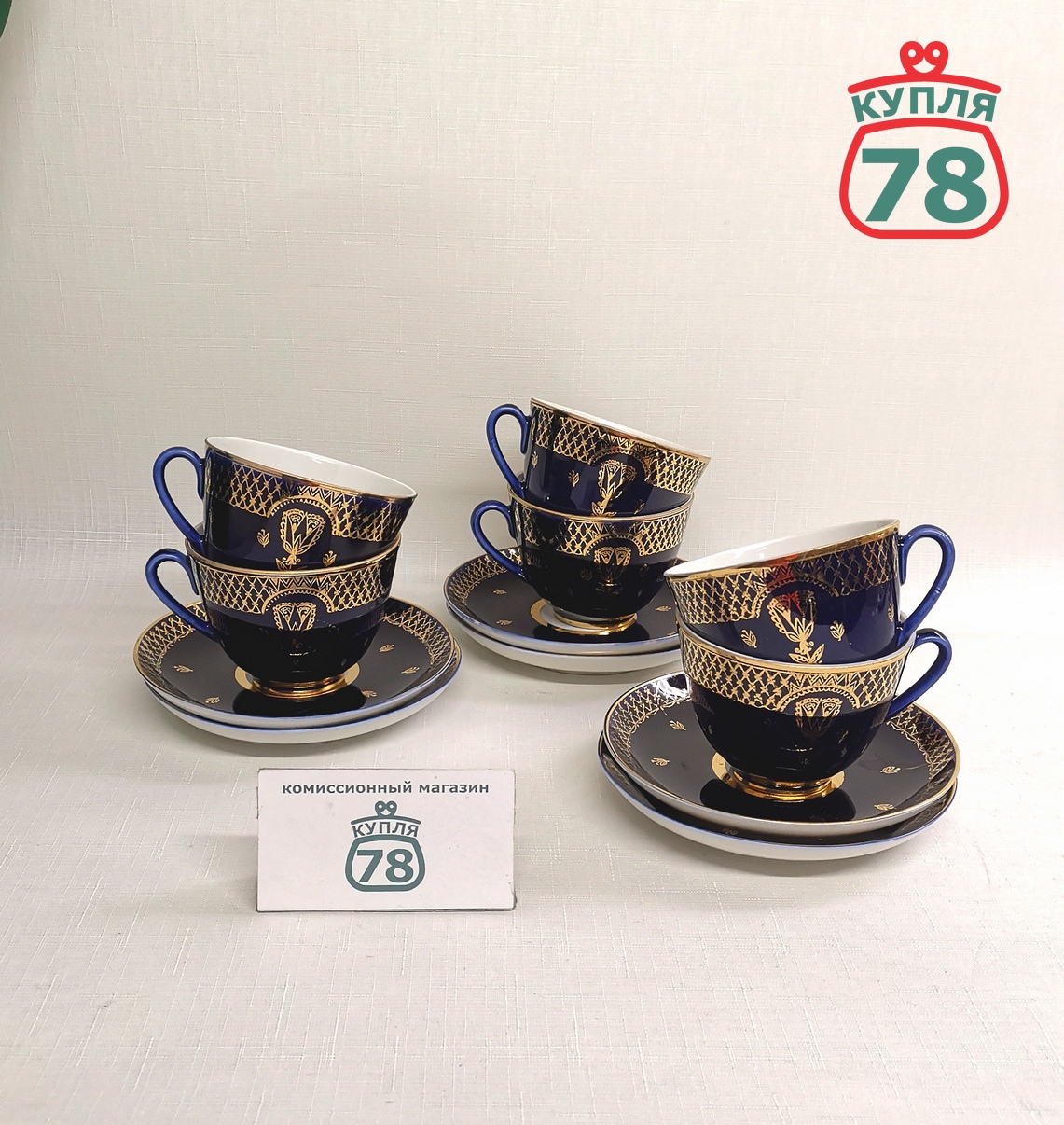 Описание товара: Комплект из шести чайных пар производство ЛФЗ. Состояние новых, позолота без потёртостей, сколов и трещин не обнаружено. Цена за комплект 6 пар.