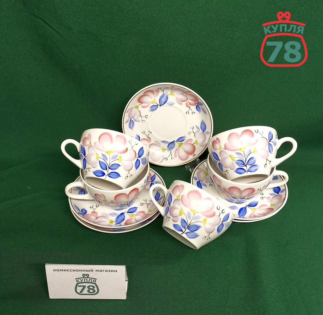 Описание товара: Чайные пары винтажные, СССР заод Пролетарий 60-е годы. Ручная роспись. Состояние новых. Потёртостей, сколов и трещин не обнаружено. Цена за 5 пар.