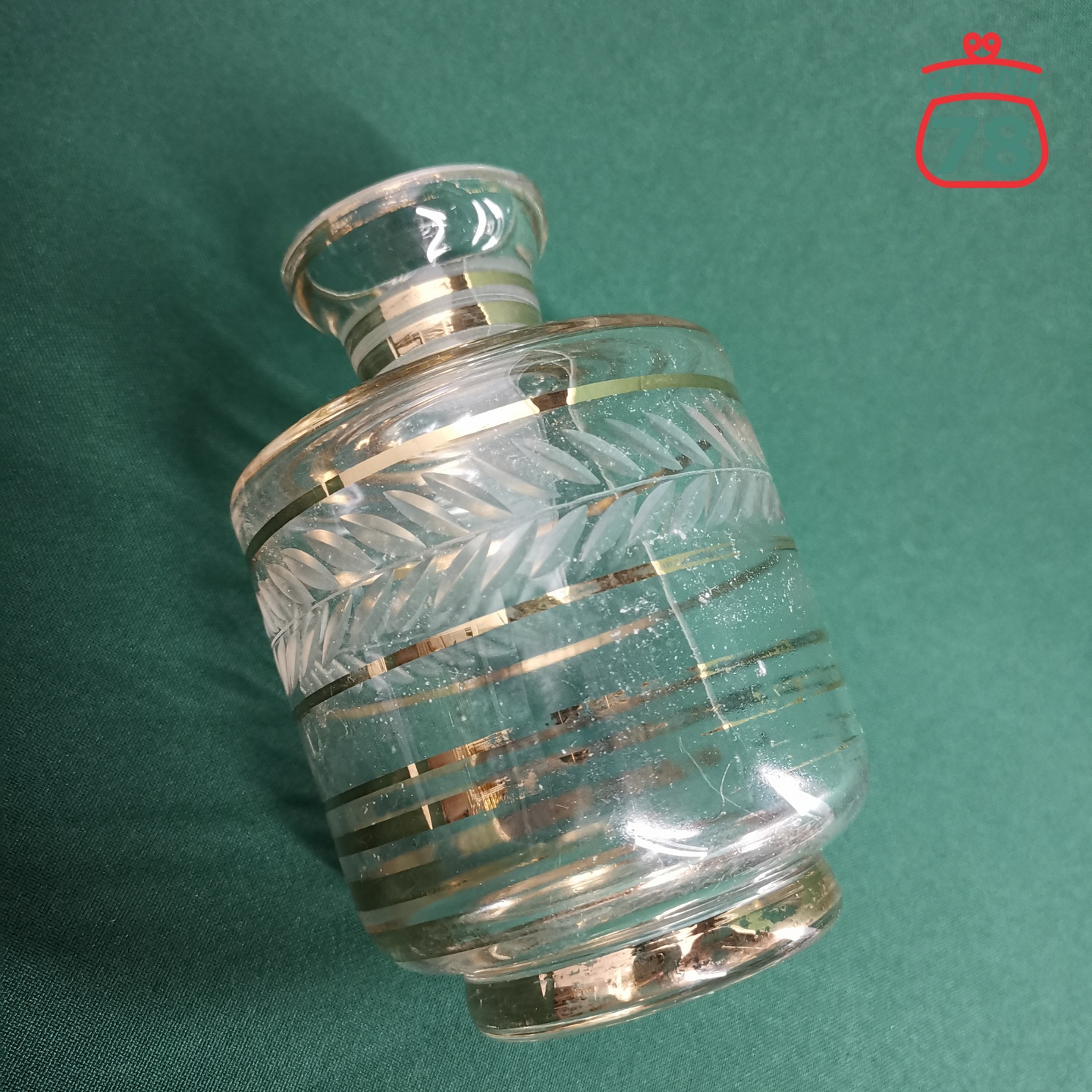 Описание товара: Миниатюрный винтажный графин производство Чехословакия. Позолота с потёртостями, на пробке один маленький скол (фото). Объём до 300 мл. Высота 14 см.