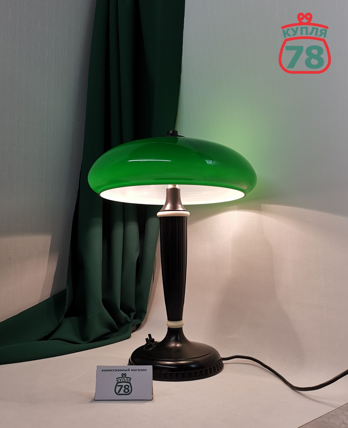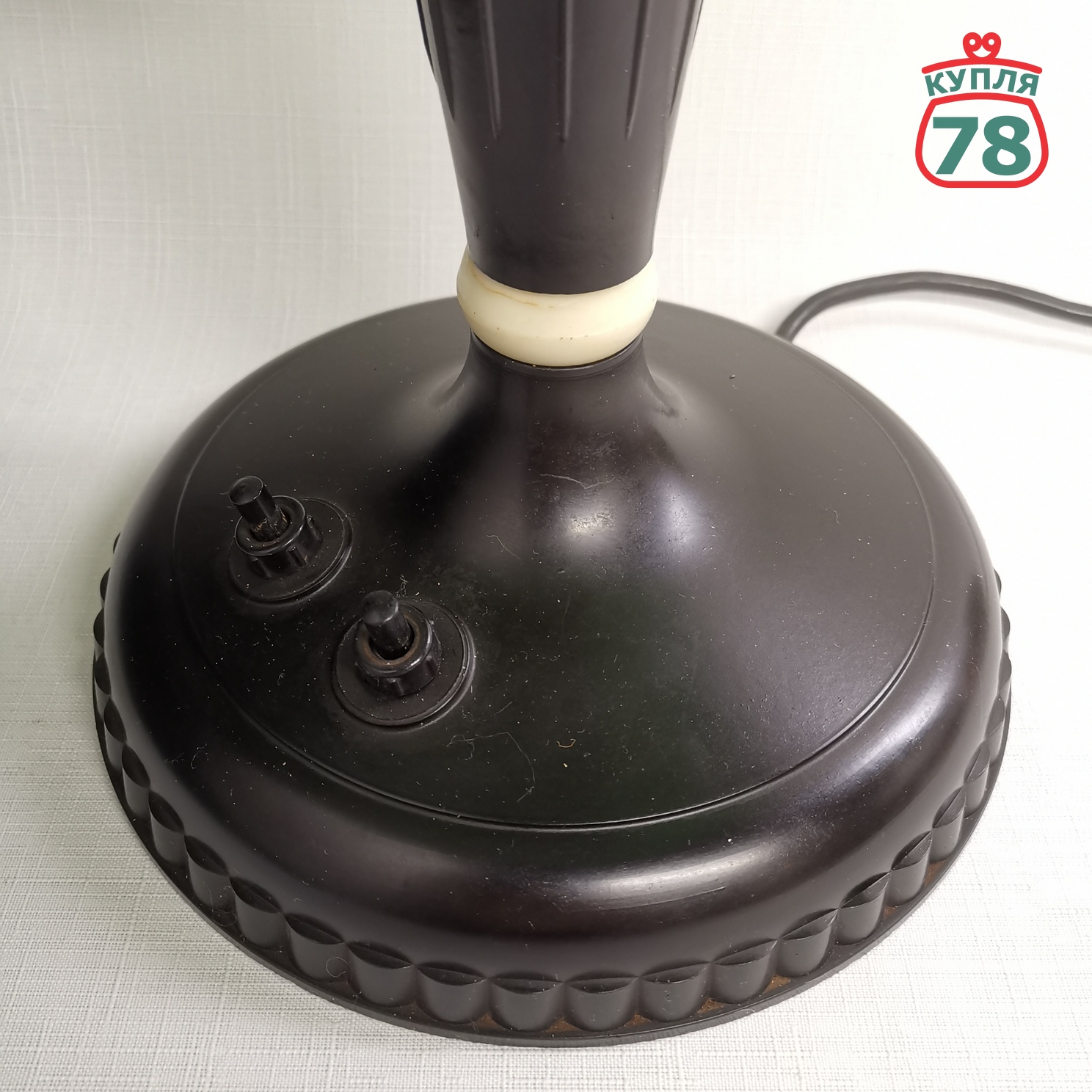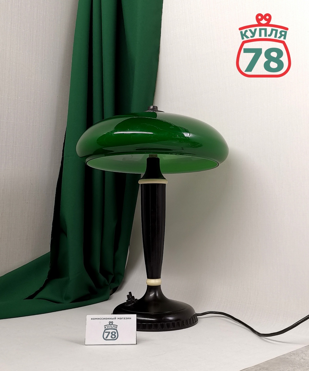 Описание товара: Раритетная карболитовая настольная лампа, Рижский завод электроустановочных изделий 1959 год. Прекрасная сохранность, без вмешательств. Лампа в рабочем состоянии. Плафон диаметром 36 см из двухслойного стекла без сколов и трещин.