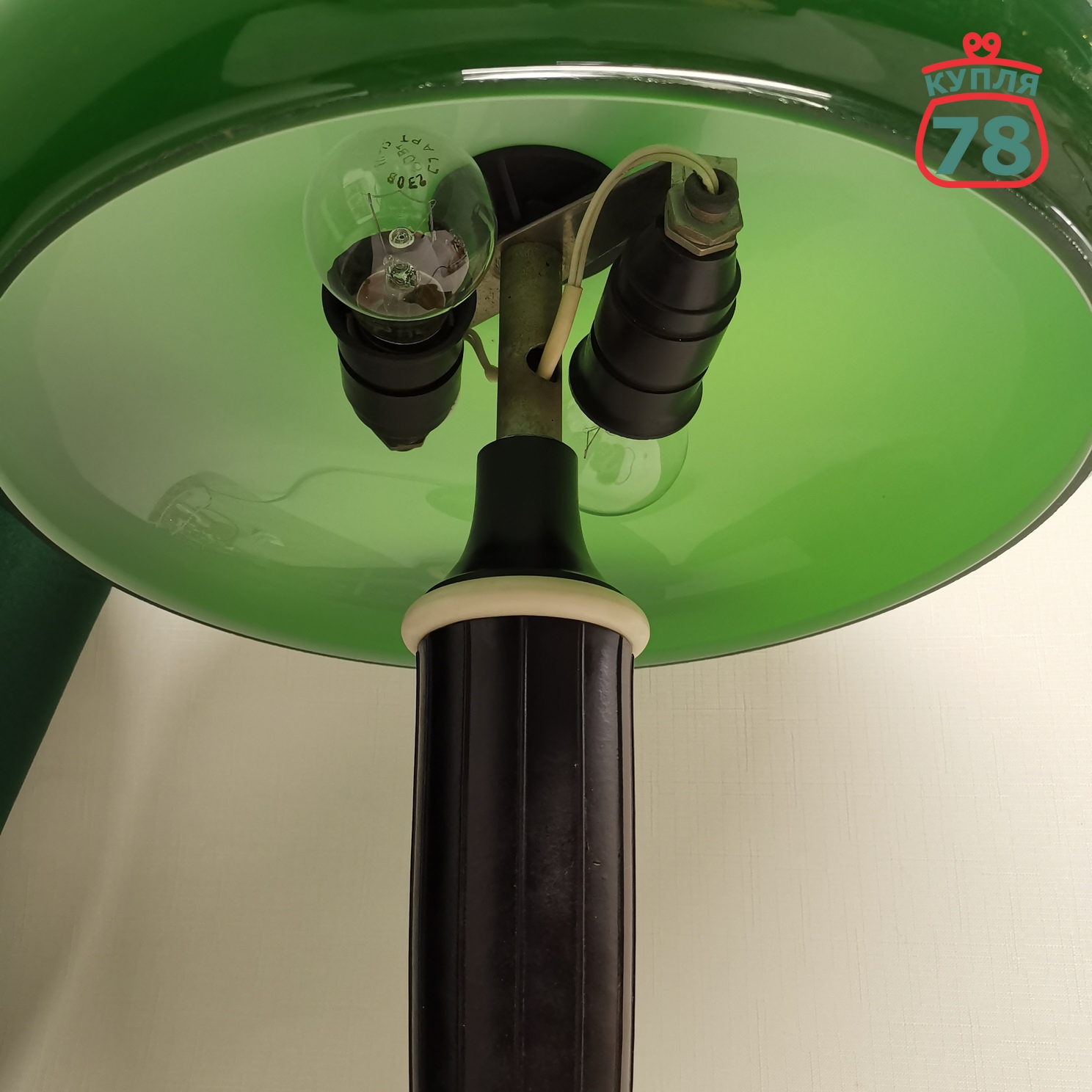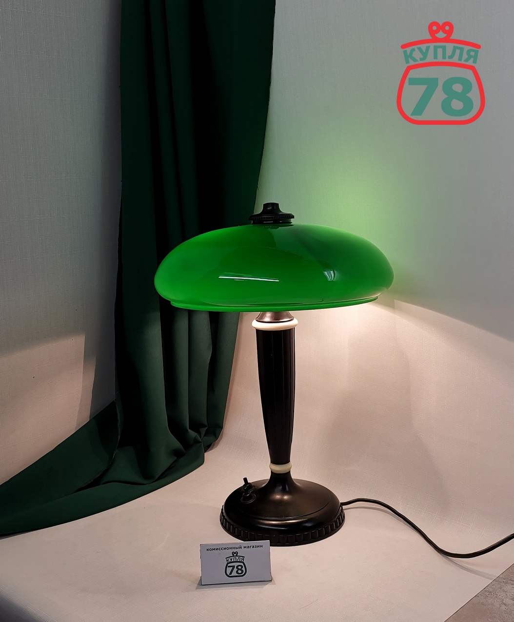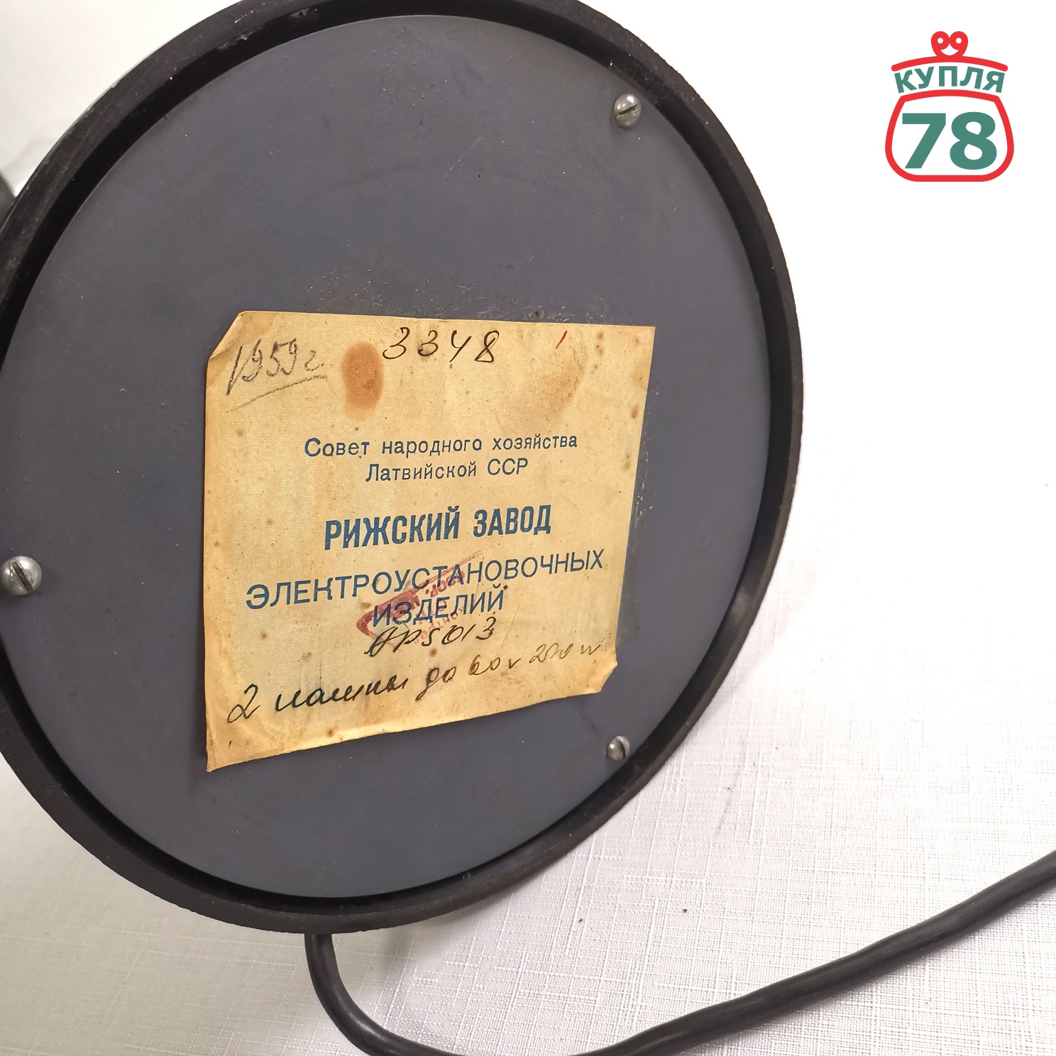 Описание товара: Раритетная карболитовая настольная лампа, Рижский завод электроустановочных изделий 1959 год. Прекрасная сохранность, без вмешательств. Лампа в рабочем состоянии. Плафон диаметром 36 см из двухслойного стекла без сколов и трещин.