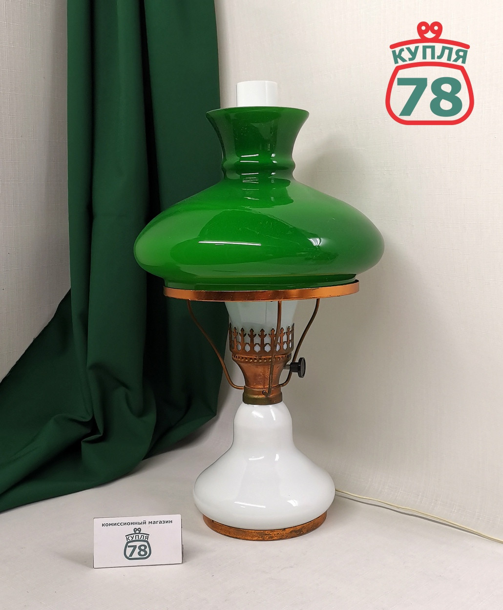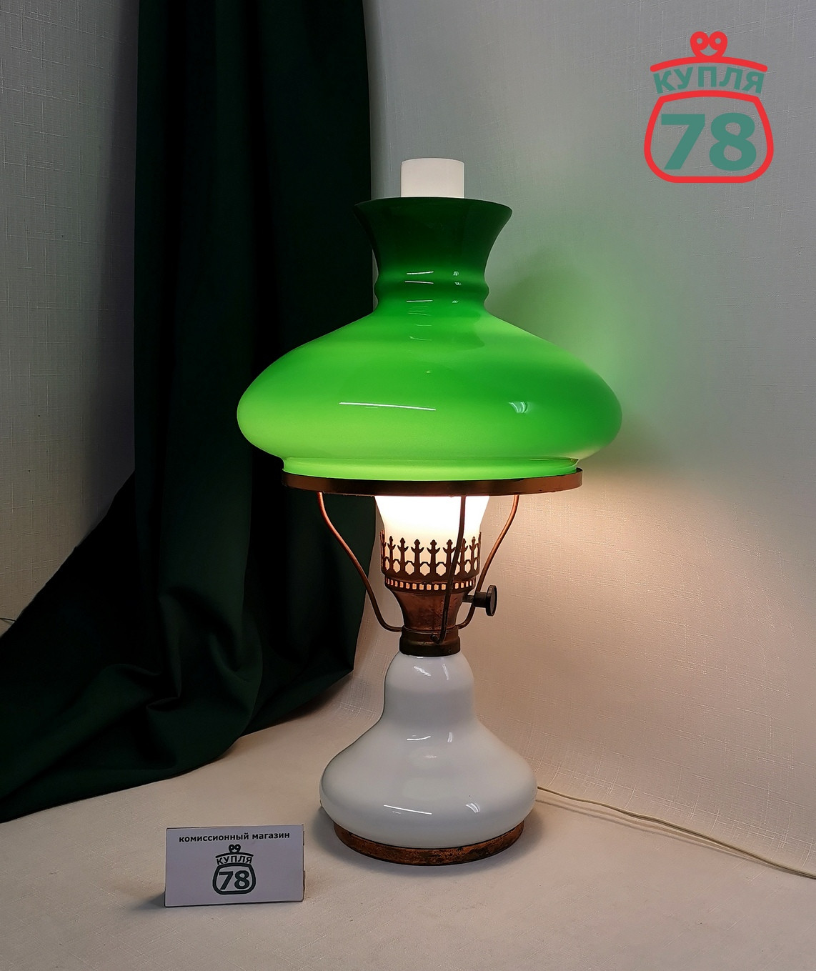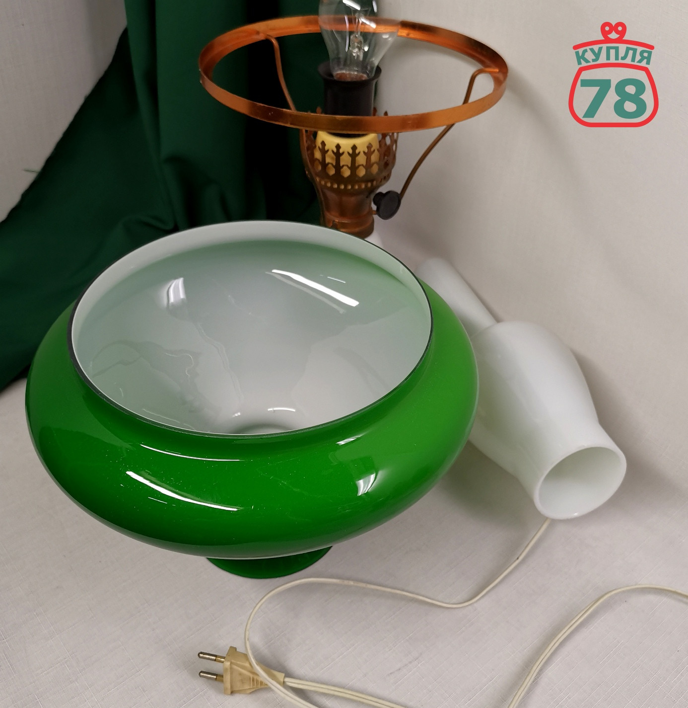 Описание товара: Настольная лампа СССР, 80-е годы в хорошей сохранности. Белое и зелёное стекло. Регулятор света работает. Лампа в рабочем состоянии. На внутреннем плафоне (колбе) есть скол (фото)