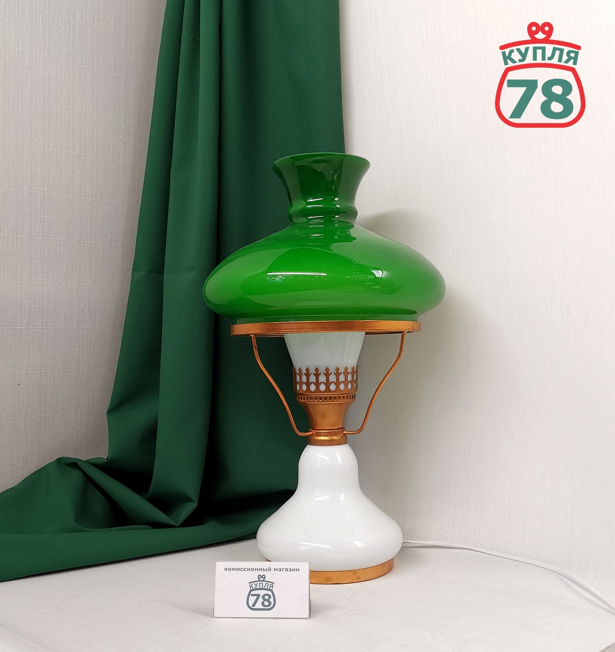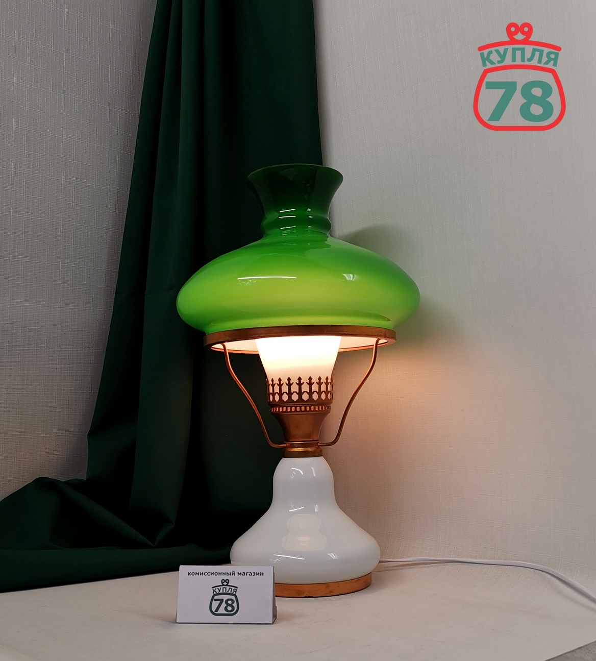Описание товара: Настольная лампа СССР, 80-е годы в хорошей сохранности. Белое и зелёное стекло. Регулятор света на кабеле. Лампа в рабочем состоянии. Сколов и трещин стекла не обнаружено.