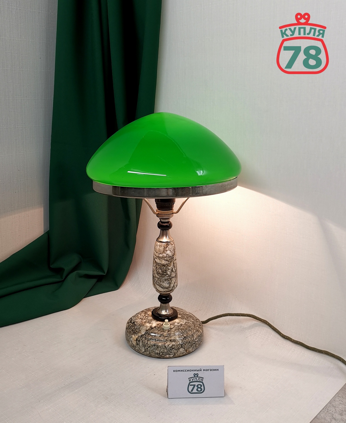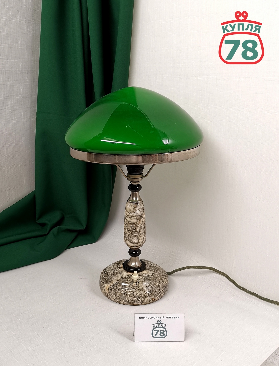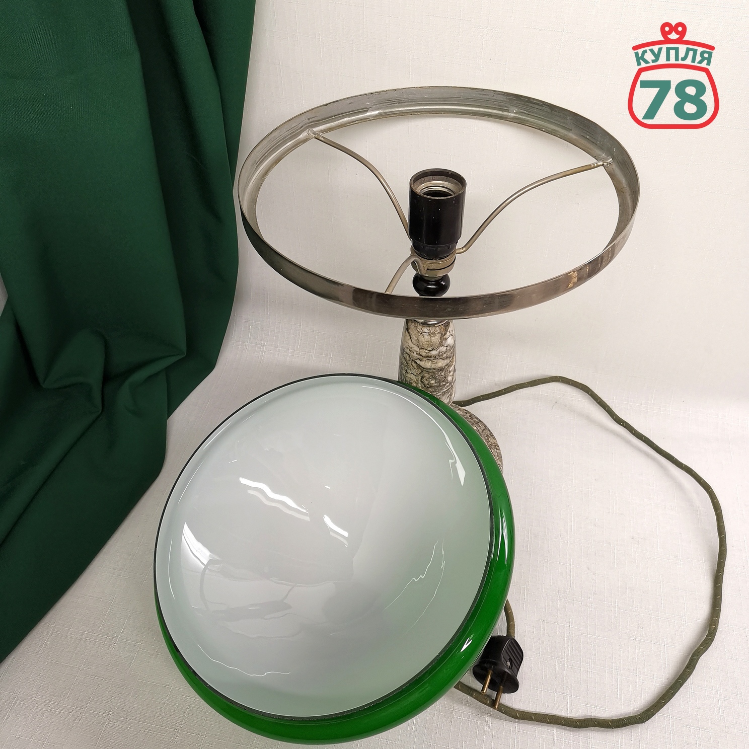 Лампа настольная СССР мрамор зелёный плафон / 3047