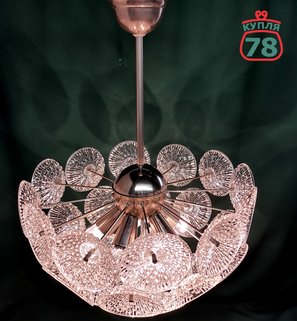 Описание товара: Люстра в прекрасном состоянии , после реставрации, электрика заменена, хрустальные элементы все целые, без трещин.