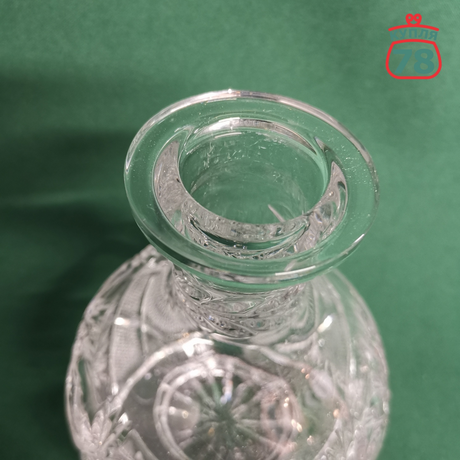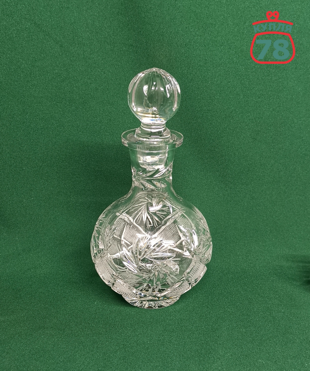 Описание товара: Хрустальный набор производство Неман Белоруссия. Графин объёмом 0,5 л, стопки объёмом 30 мл. Скол у основания пробки (фото). Цена за набор.