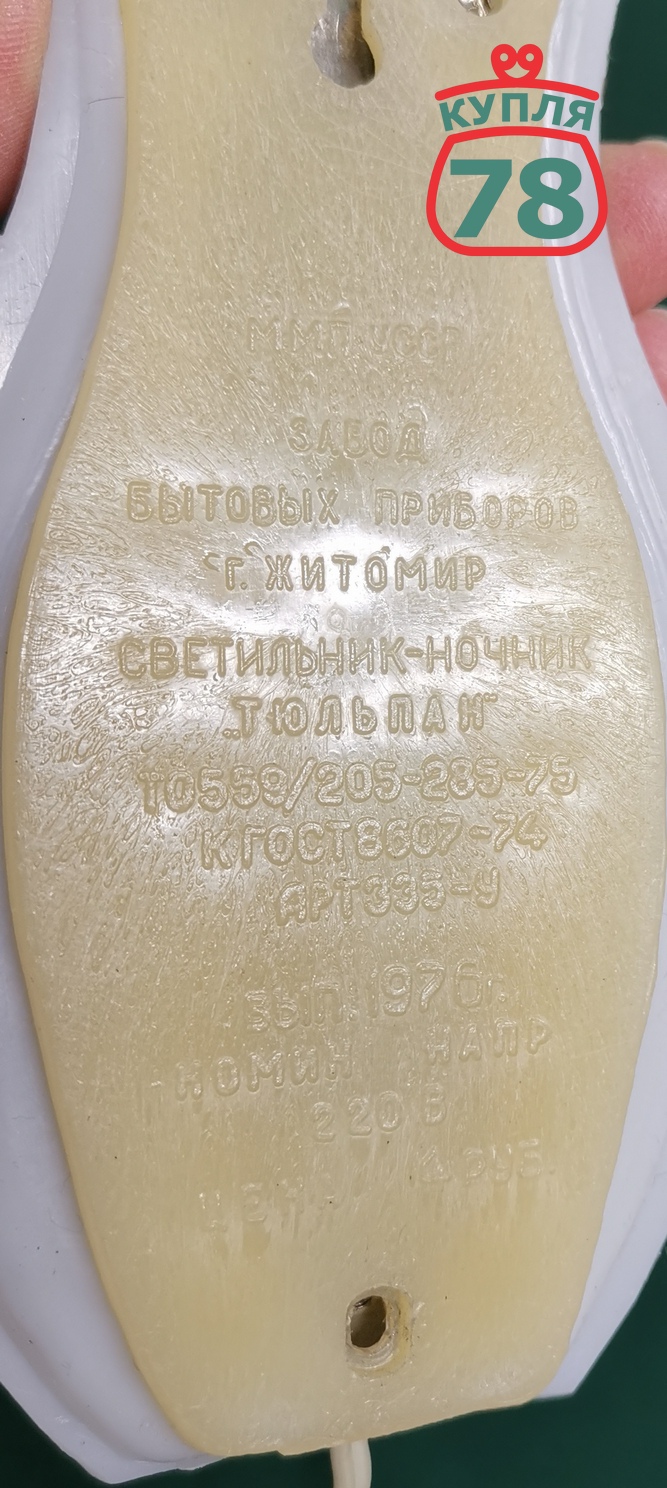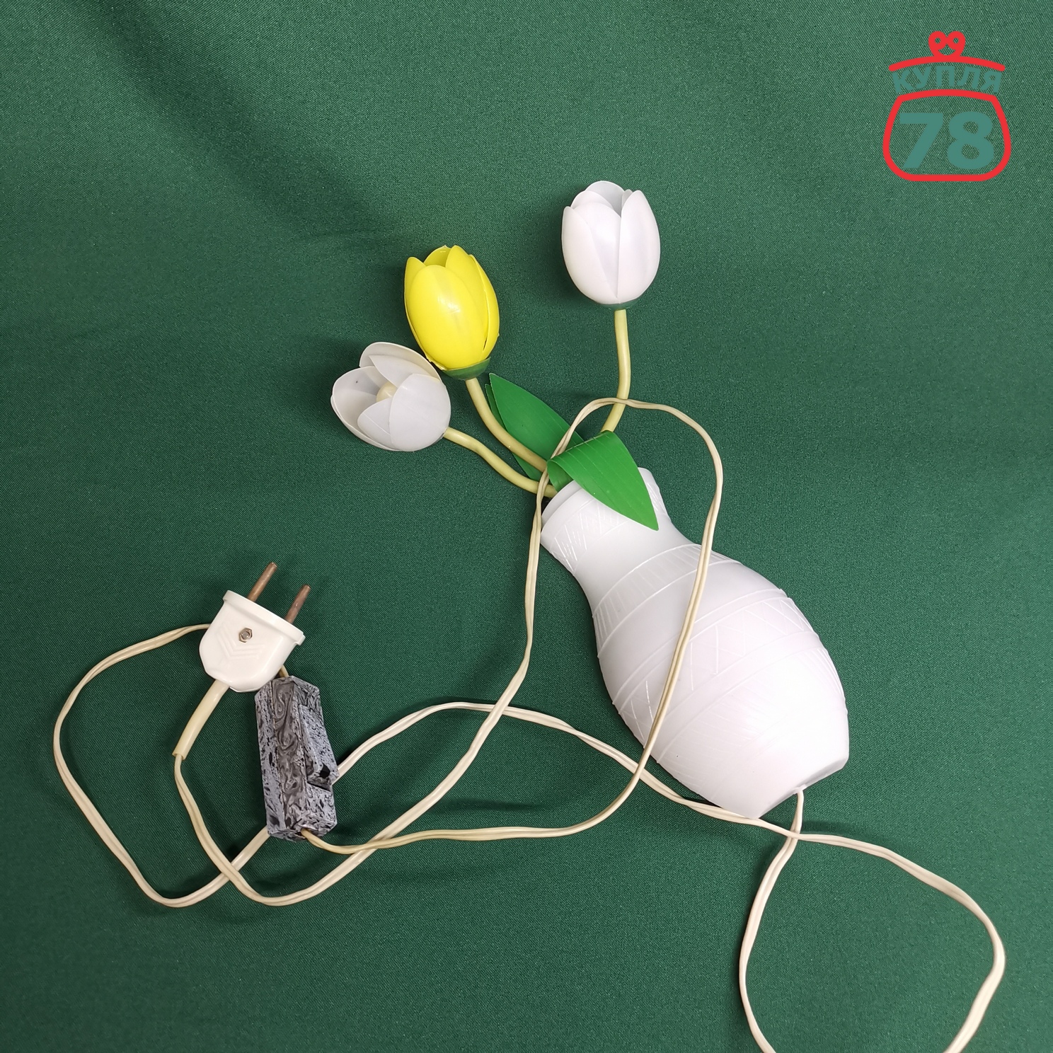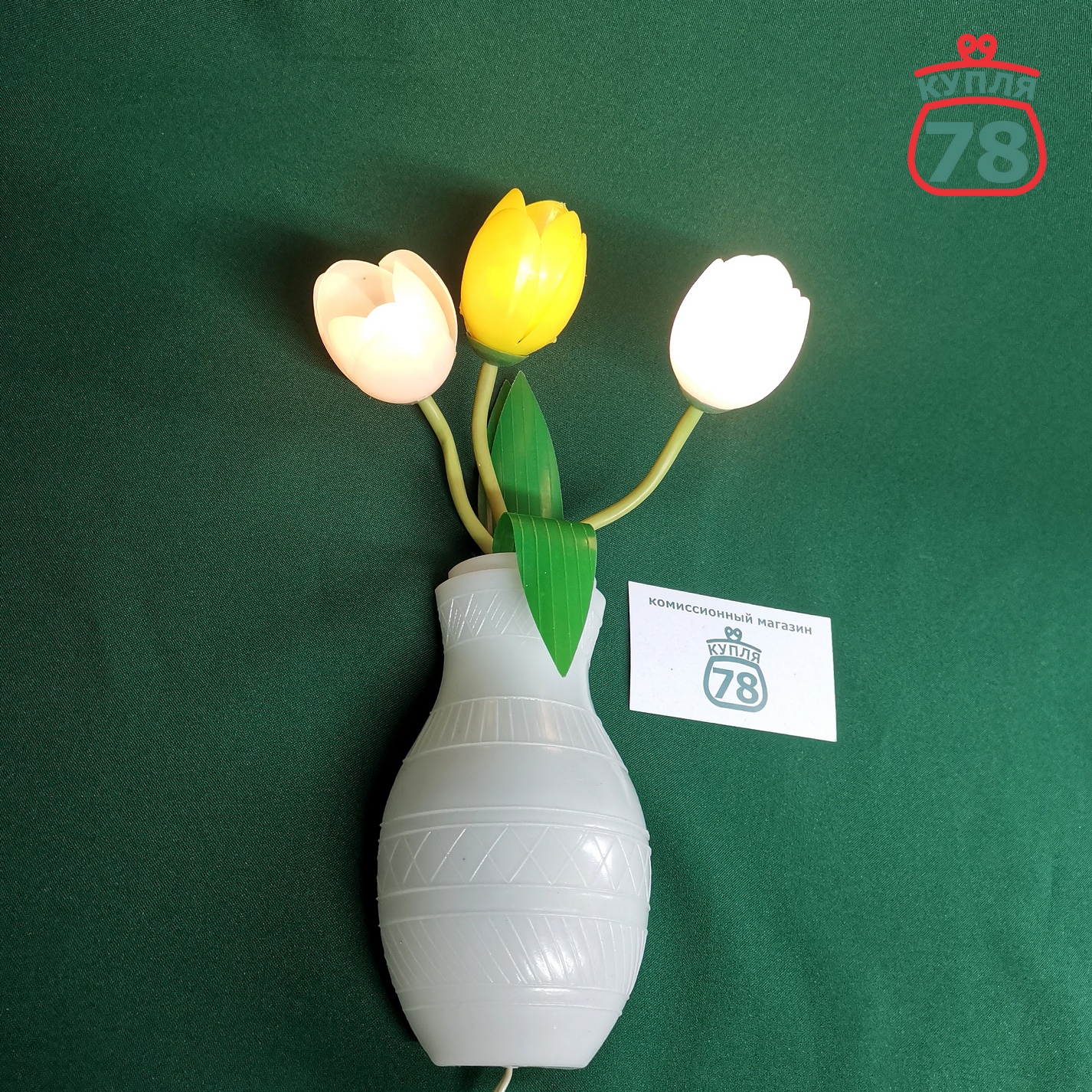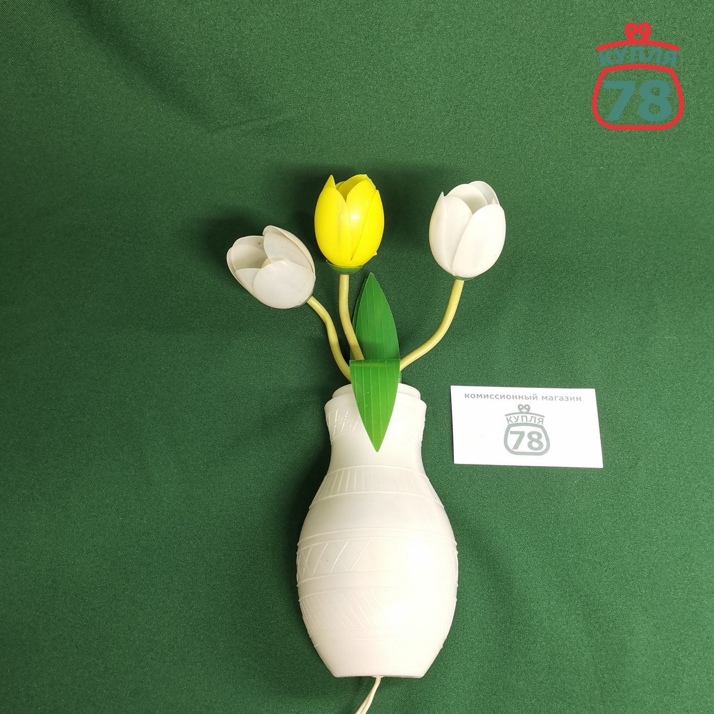 Описание товара: Светильник ночник «Тюльпаны» выпуск 1976 г СССР. Пластик. Состояние нового. Рабочий.