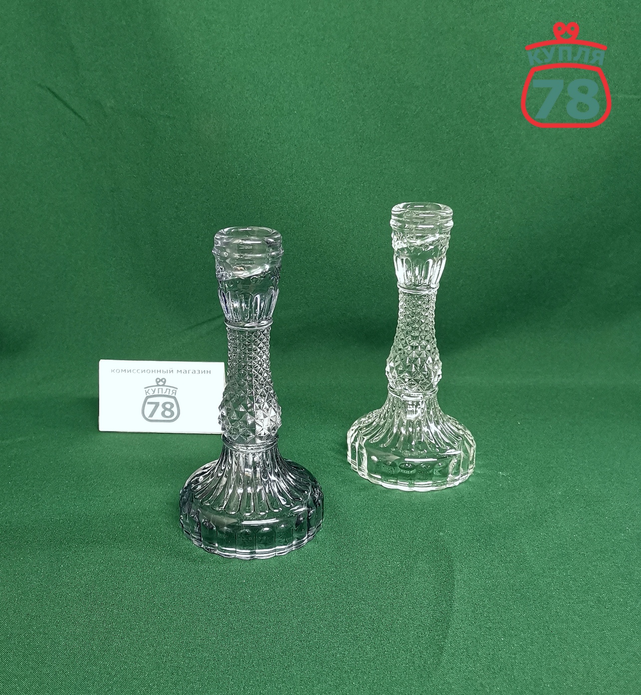 Габариты (размеры округлены вверх до см): "Подсвечники для свечи парные стекло / 3299": 9 см Х 9 см Х 17 см