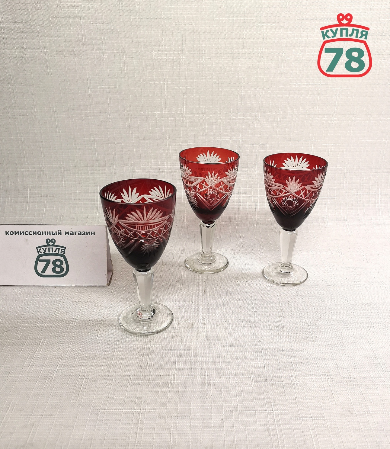Габариты (размеры округлены вверх до см): "Рюмки цветной хрусталь рубиновое стекло / 3314 ": 5 см Х 5 см Х 10 см
