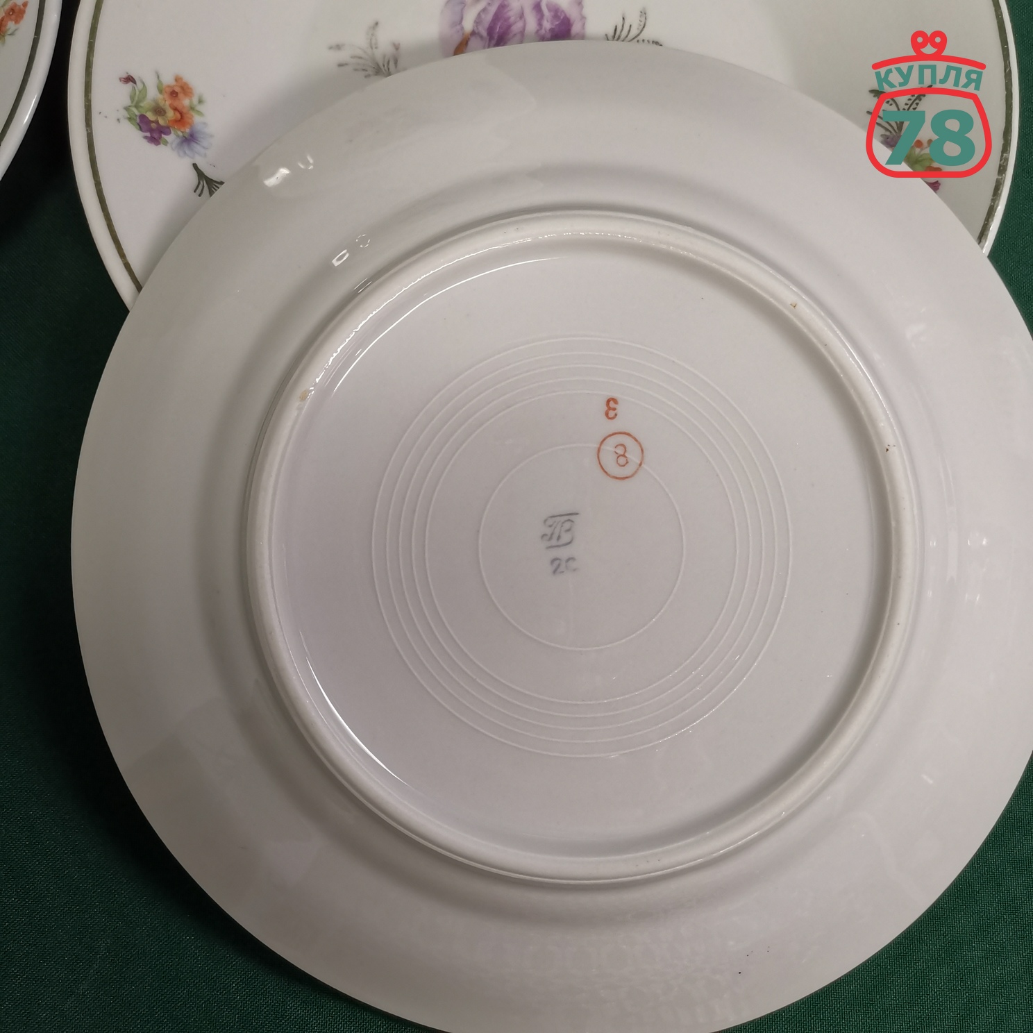 Габариты (размеры округлены вверх до см): "Тарелки фарфор Мейсенский букет Пролетарий 4 шт 20 см / 3477": 20 см Х 20 см Х 2 см