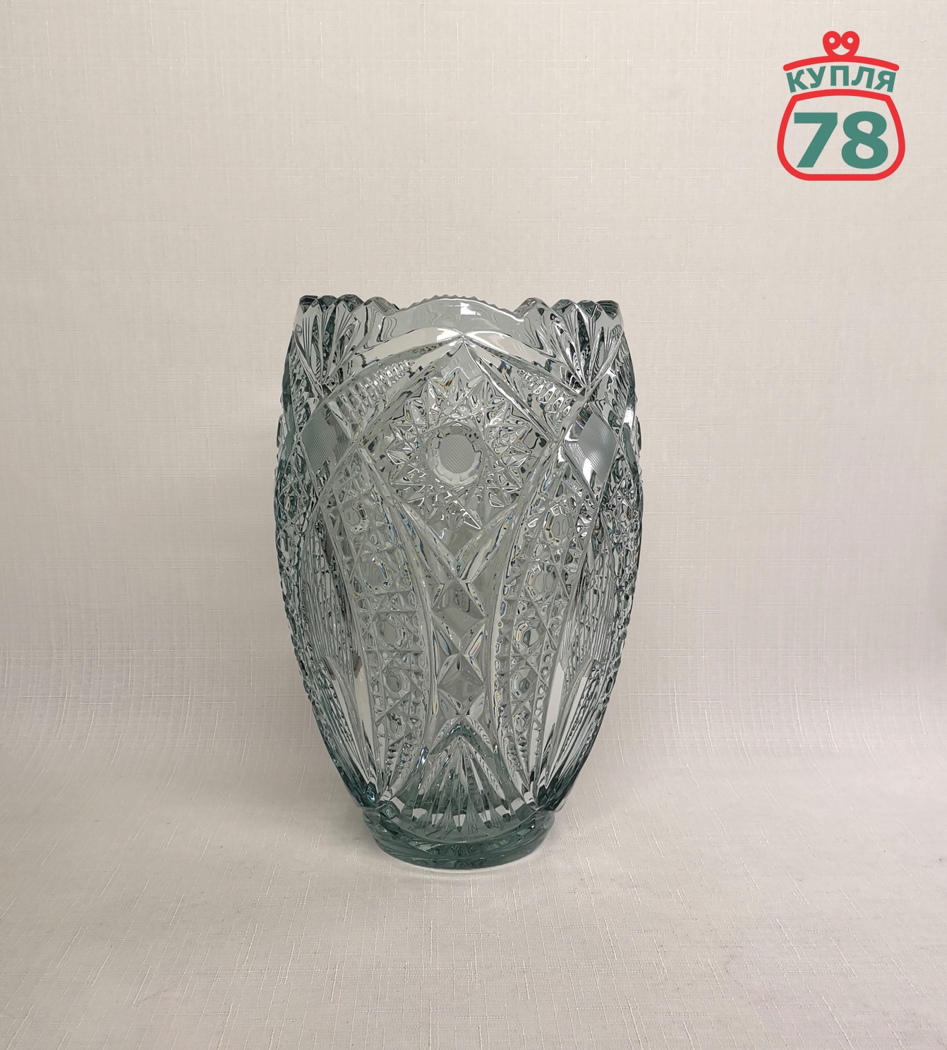 Описание товара: Высокая объёмная ваза для цветов редкого голубого оттенка хрусталя. Прекрасное состояние, дефектов, сколов и трещин не обнаружено. Высота 27 см, раскрытие 15 см.